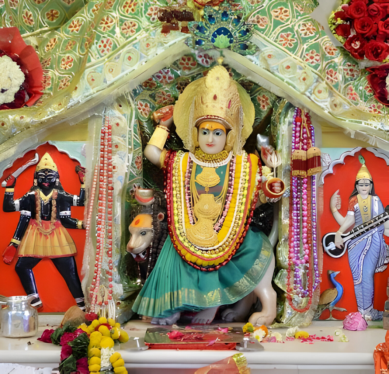 Receive radiant blessings with this Mata Jhande religious art piece. The composition exudes a sense of divine grace, making it a visual reminder of the blessings that surround you.